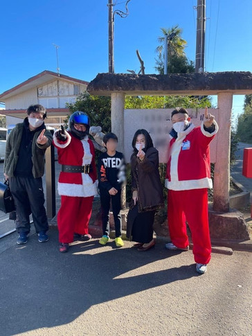 例年は80台近い隊列を2手に分けて先導し、今回のいすみの他に成田方面の2施設に訪問しているのですが、今年は時間の関係で同日に訪問することができなかったため、2日後の12月21日に代表の道家と幹部サンタがそちらを訪問しました。